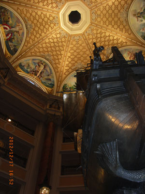 まーるいエントランスホールの真ん中には、船のモニュメント。ディズニーシーですものね。