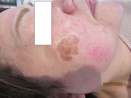 マスクで隠れていたので初めは全く分からなかったのですが、マスクを外しましたらビックリするほど、大きくて色の濃いシミでした。