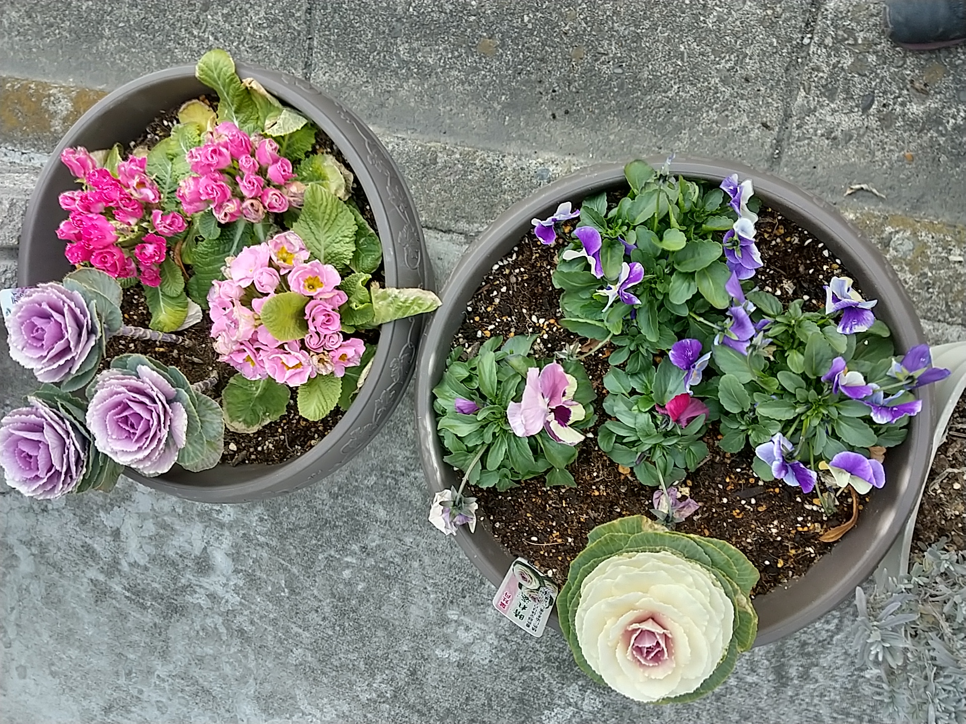 今年の冬はバラ咲きジュリアンと葉牡丹に安らぎをいただいています♥️