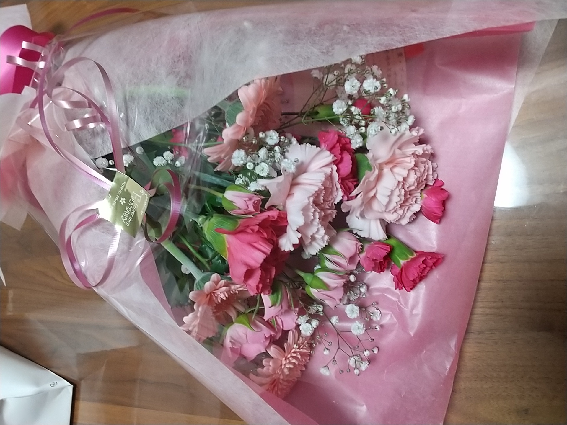 帰宅すると、花束が玄関に置いてありました。(^-^)