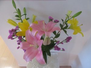 でも素敵で上品なピンク色のユリとの出会いは、短い時間ですが私もお客様も楽しませてもらっています。