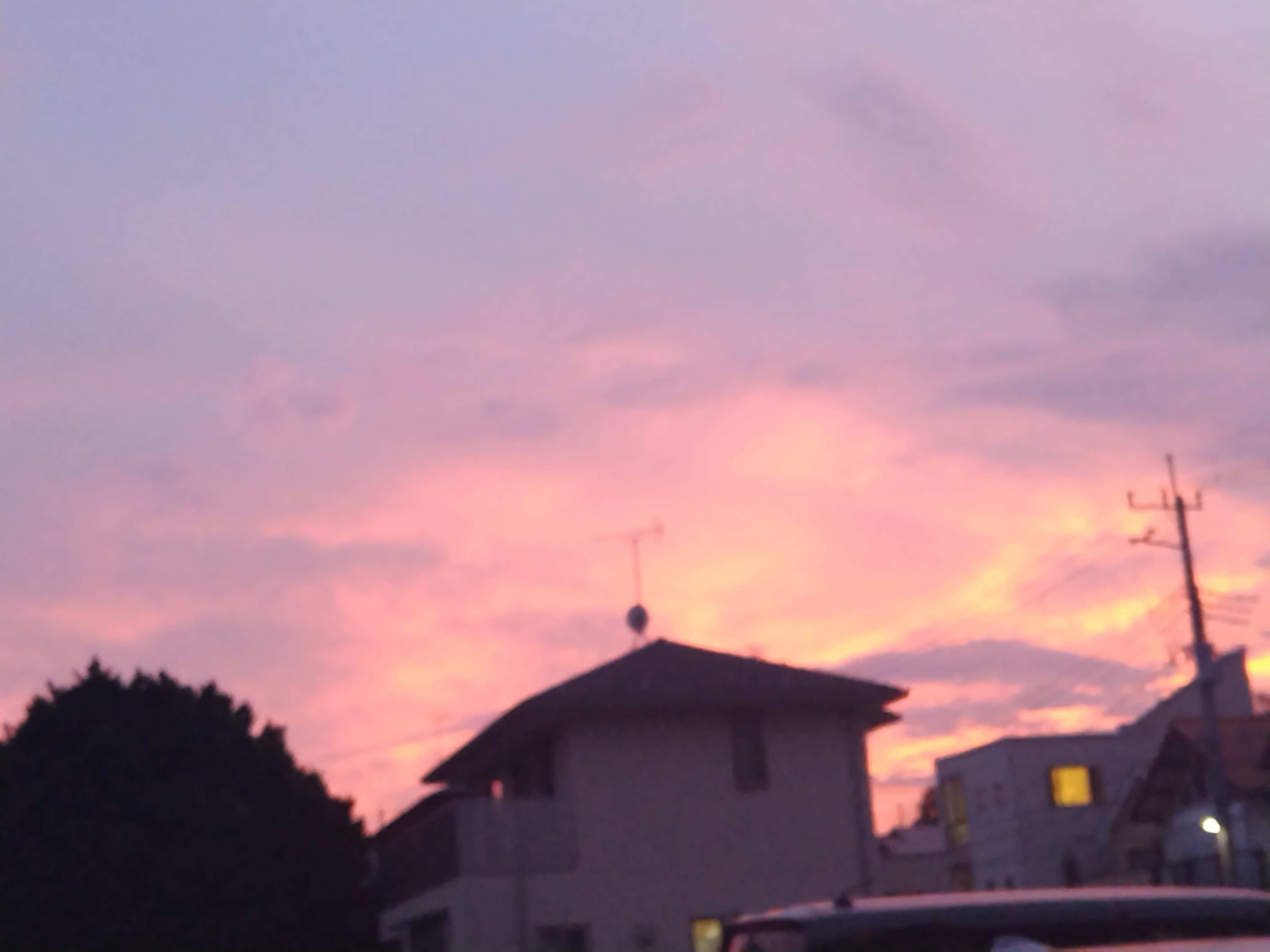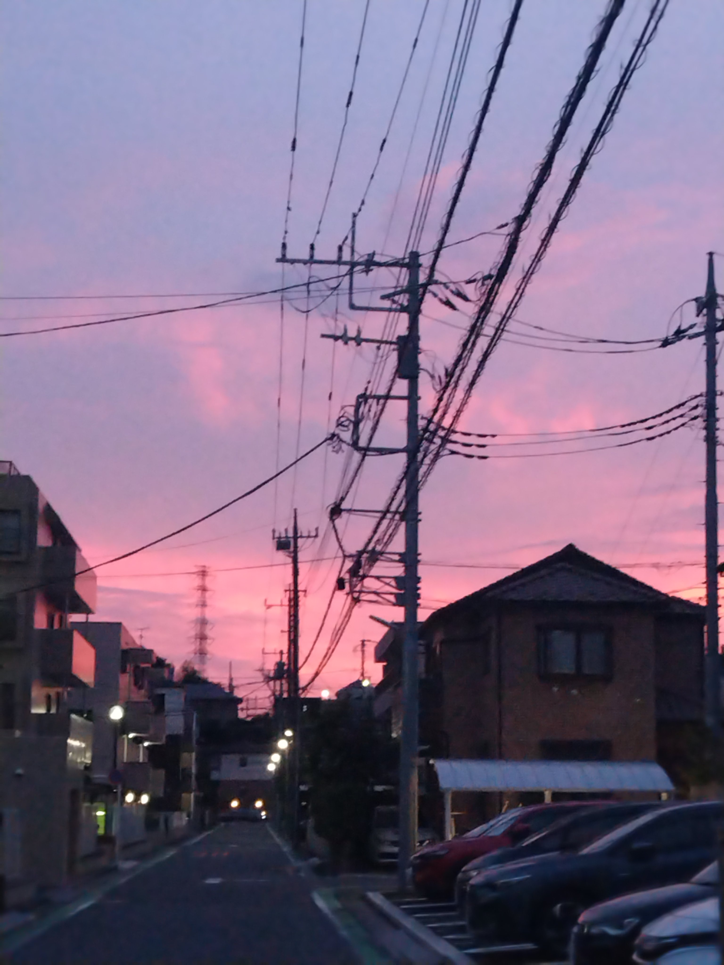 夕方のお散歩をしていたら、西の空が真っ赤に染って、とてもきれいでした。