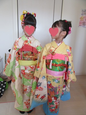 おねえちゃまが七歳、妹さんが五歳なのですが、お二人の着付けをご依頼されました。
